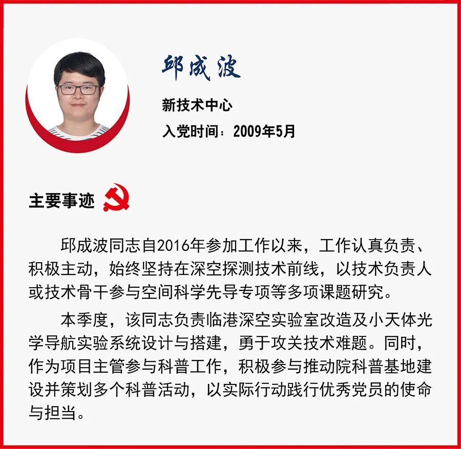 卫星创新院2021年第二季度优秀共产党员标兵公示