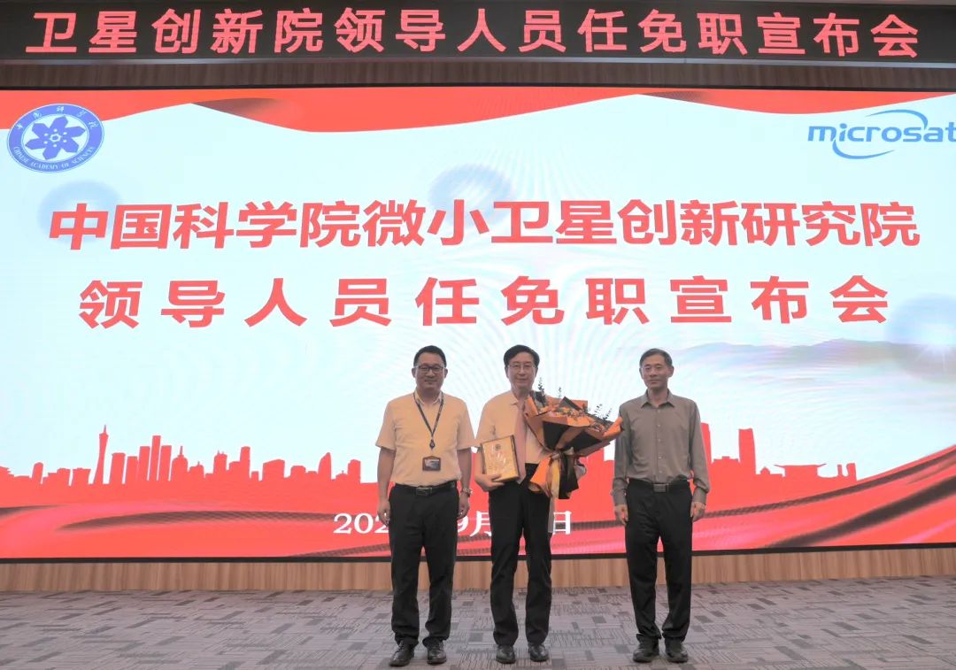 胡嘉宣读了中国科学院党组的决定,胡海鹰任卫星创新院院长,林宝军不再担任卫星创新院副院长。受院党组委托,李正华向林宝军颁发了荣誉奖牌,胡海鹰向其献花,感谢林宝军在岗位上的倾心付出和重要贡献。