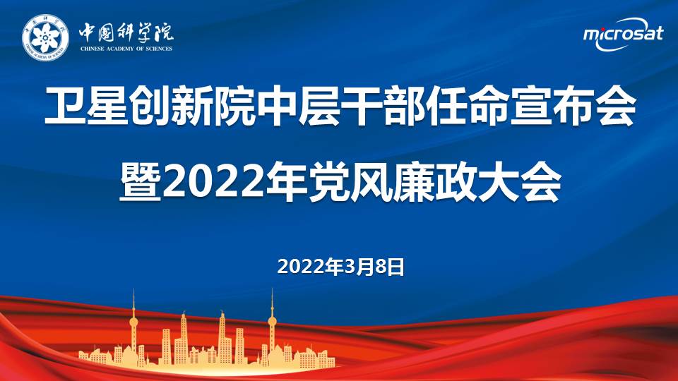 3月8日,中科院微小卫星创新研究院召开中层干部任命宣布会暨2022年党风廉政大会。副院长(主持工作)胡海鹰、党委书记、副院长朱振才等院领导出席会议,两委委员、责任总工、各支部支委、工青妇组织负责人及管理部门全体员工等70余人参加会议。大会由党委副书记、纪委书记周四根主持。 3月8日,中科院微小卫星创新研究院召开中层干部任命宣布会暨2022年党风廉政大会。副院长(主持工作)胡海鹰、党委书记、副院长朱振才等院领导出席会议,两委委...