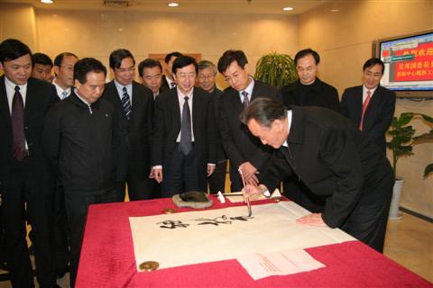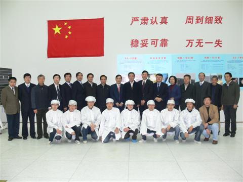 在卫星总装厂房,朱振才副主任向吴邦国委员长汇报了创新一号小卫星、“神舟七号”伴星的运行情况以及上海微小卫星工程中心正在开展的卫星研制工作,吴邦国亲切慰问了现场工作人员,与大家合影留念并题词:“科技亮剑,再创辉煌”。