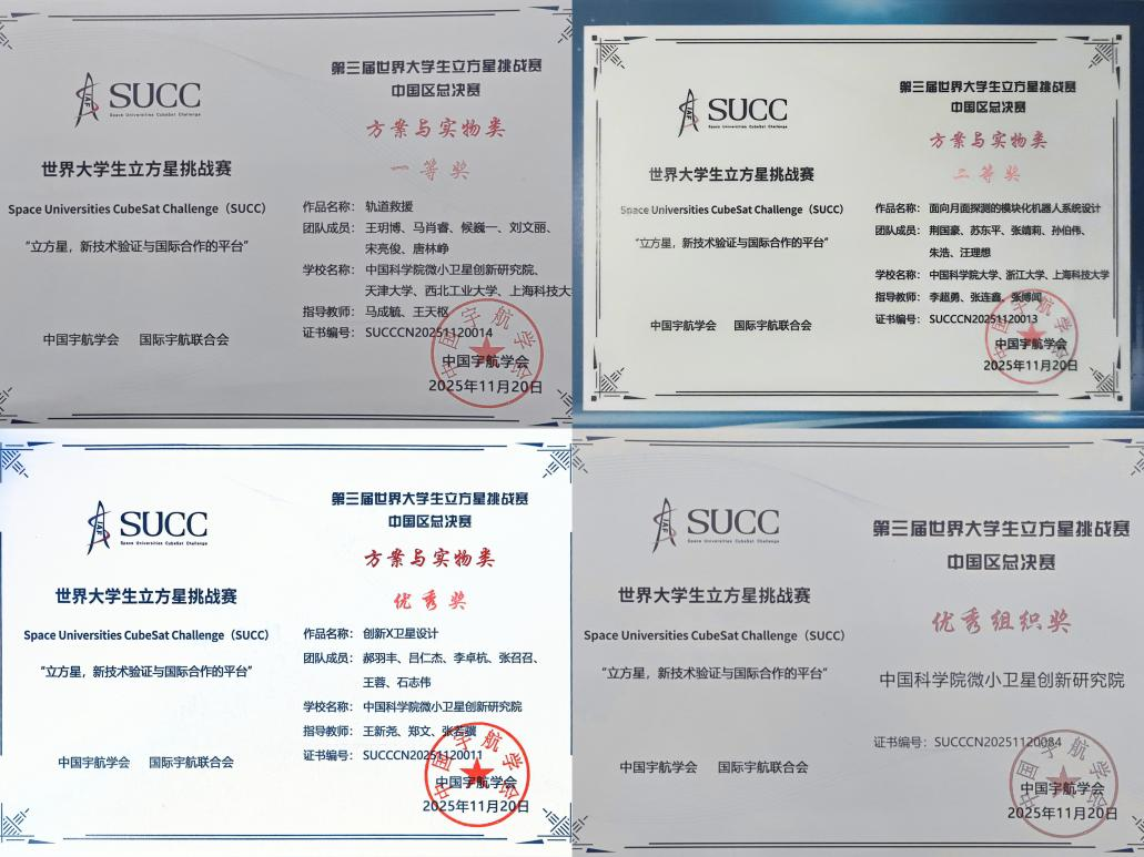 三个获奖项目均体现了卫星创新院团队扎实的工程基础、系统设计能力与跨学科协作优势。