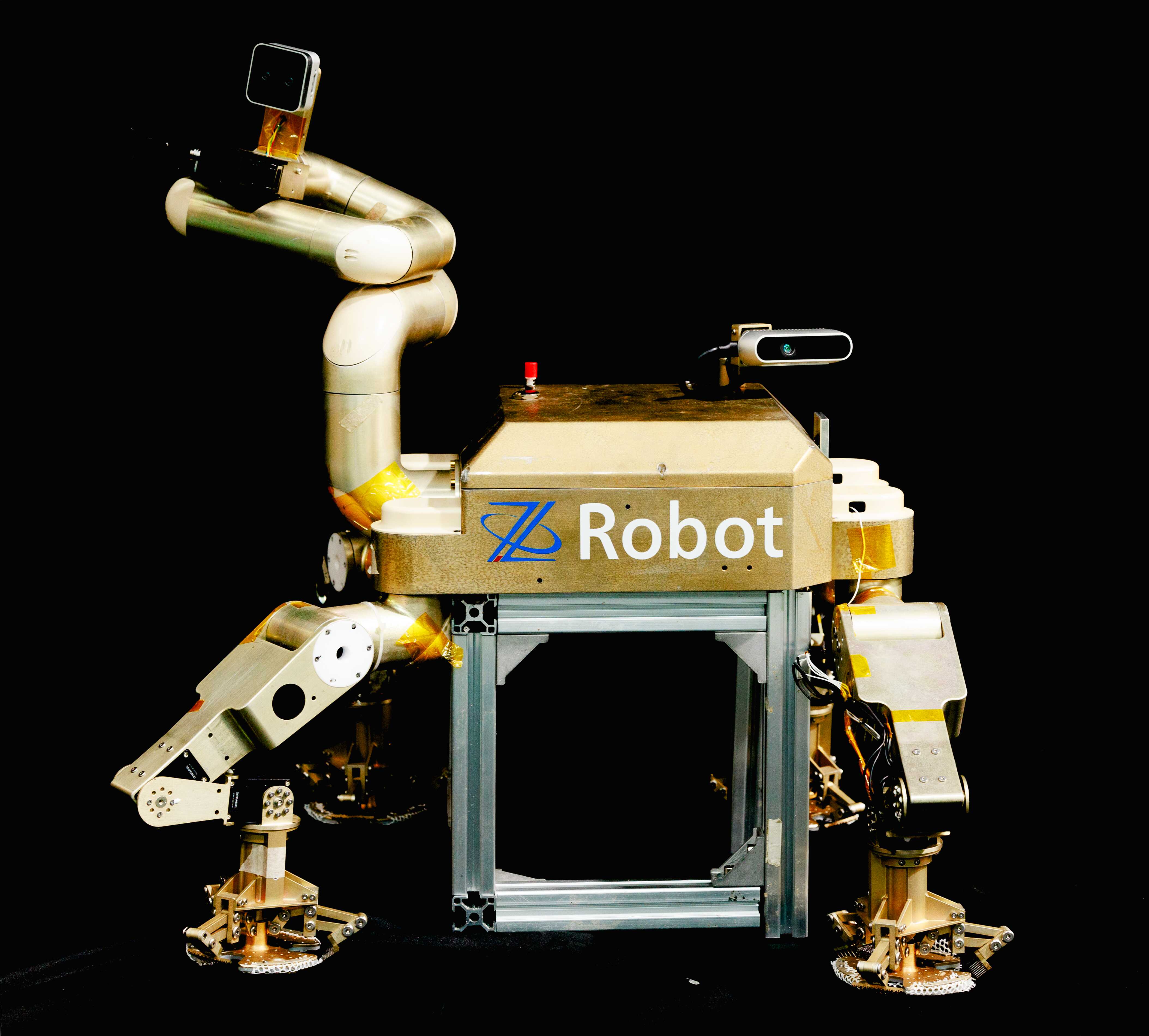 在轨服务任务需要航天器具备可靠的表面运动能力,但不同材料(如刚性金属与柔性多层绝缘材料)带来了显著挑战。本文提出仿生四足攀爬机器人 SPACE-1,通过集成干粘附与穿刺机制的双模式抓取器,实现对异质表面的稳定附着与运动。结合五杆机构实现自适应模式切换,并设计基于贝塞尔曲线的轨迹优化方法以降低运动扰动。实验表明,该机器人可在刚性与柔性表面稳定爬行,验证了其在航天器在轨检测与维护中的应用潜力。